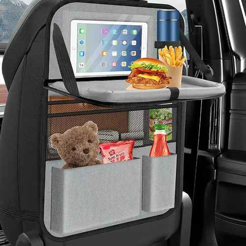 Say goodbye to a messy car! This storage bag comes with a dining tray and trash bin—tuck things away easily, no hassle!